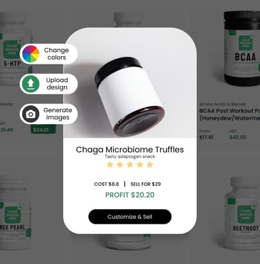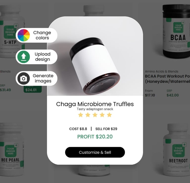 Calidad probada y certificada Tenemos de todo, desde nutrición deportiva hasta hongos medicinales, con más de 100 productos de marca blanca suministrados por fabricantes que ofrecen las marcas domésticas favoritas de Estados Unidos. No importa cuál sea tu nicho, ¡lo hemos cubierto!